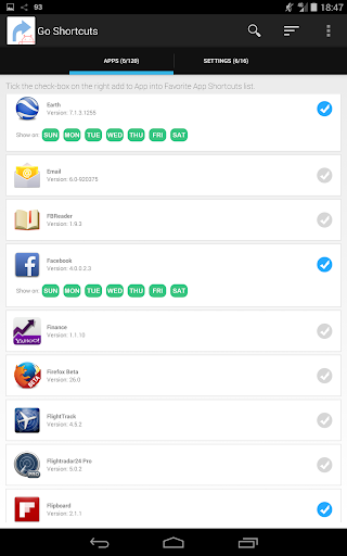 This app also allows you to set which Apps and/or Settings shortcuts to be showed on which particular day.
