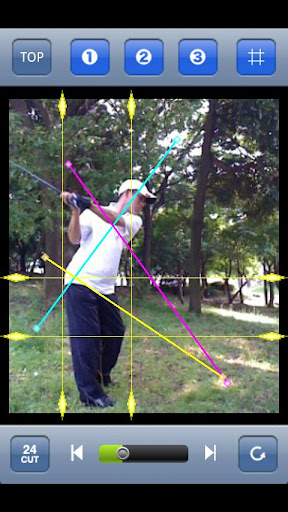 You can watch your recorded swing including the guide and support lines by dragging slider control.