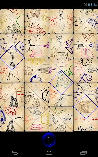 Unlike traditional tarot cards, the Gypsy Fortune Telling Cards are made up of squares. Each square has a part of one of 40 symbols on each of four sides. The cards need to be rotated to align matching symbols. The reading is then based on the "whole" symbols that get formed.