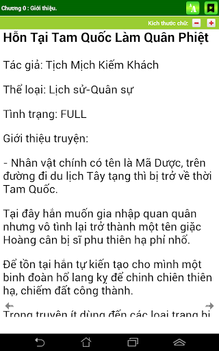 - Nhân vật chính có tên là Mã Dược, trên đường đi du lịch Tây tạng thì bị trở về thời Tam Quốc. Tại đây hắn muốn gia nhập quan quân nhưng vô tình lại trở thành một tên giặc Hoàng cân bị sĩ phu thiên hạ phỉ nhổ. Để tồn tại hắn tự kiến tạo cho mình một binh đoàn hổ lang kỵ để chinh chiên thiên hạ, chiếm đất công thành. Trong truyện ít dùng đến các loại trang bị hiện đại như các truyện cùng thể loại, mưu kế thâm sâu, tàn nhẫn, ngoan độc, đôi khi cũng pha vào nhưng pha nóng bỏng để thay đổi không khí. Trừ đi tính dân tộc độc tôn rất cao thường có ở các tác giả Trung Quốc thì đây là một bộ truyện khá hay, rất đáng để đọc.