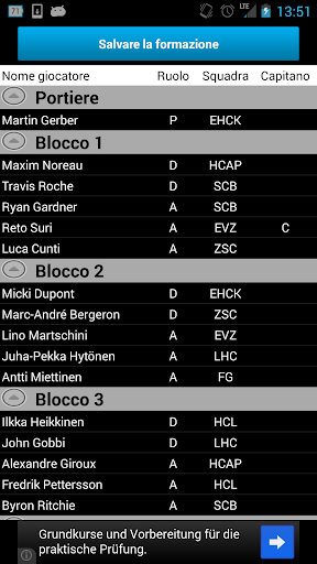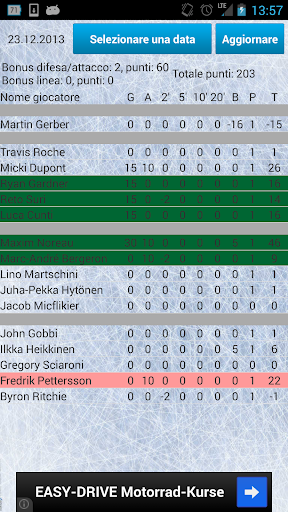 Inserisci manualmente i giocatori della/e tua/e squadra/e copiandoli dal sito http://www.hockeymanager.ch/, fai la tua formazione e visualizza i risultati in tempo reale mentre le squadre stanno giocando le partite.