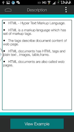 HTML AND CSS Application contains brief description and different examples using online editor of HTML, HTML5, CSS, CSS3. HTML AND CSS is an application which is useful for those who wants to learn HTML / HTML5 / CSS /CSS3 with online editor. It contains different online examples of Html, Html5, Css, Css3.