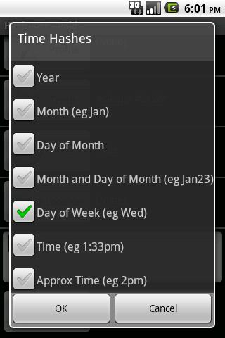 Select the time-based tags you want automatically added. Like #Jan25 #2pm