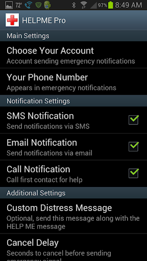 HelpMe Pro also allows you to set the cancel time in case the red shiny button is pressed by accident.