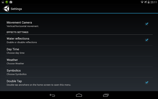 - Realistic change the time of day (automatic shift, morning, afternoon, evening, night ) is synchronized with the time of the telephone system , requires no internet or GPS.