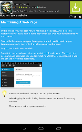 No need for technical skills. This app will show you everything from registering a domain name and a web host. Did you know that certain domain names are like virtual real estate where they can appreciate in value? There is a short tutorial on choosing the right domain name. This app also comes with a short web hosting tutorial. Learn between dedicated web hosting and shared web hosting. Once you have selected your domain name and web hosting, this tutorial will show you how to connect the two together.