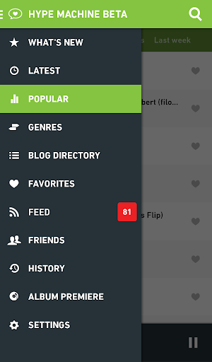 • FAVORITES: Your favorite tracks on Hype Machine.