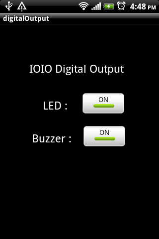 Simple App designed by Tenet Technetronics (http://tenettech.com) that allows one to control the led and buzzer connected to the IOIO board.