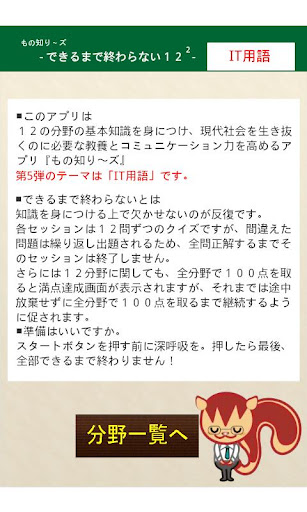 12の分野の基本知識を身につけ、現代社会を生き抜くのに必要な教養とコミュニケーション力を高めるアプリ『もの知り~ズ』。