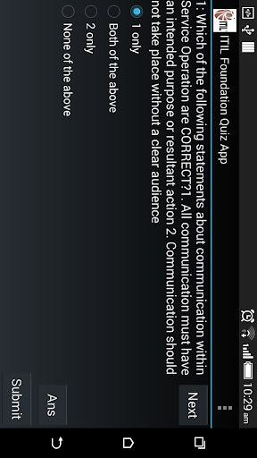An ITIL foundation quiz app with four quizzes or Mock tests.Each quiz carrying 60 questions.Report card functionality for reviewing how you are doing.