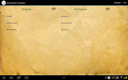 In Document Translator helps you to read articles or books in a partial known language by you. This application is an useful tool for practice and improve your foreign languages skills in a relaxing and comfortable way, reading your favorite books.
