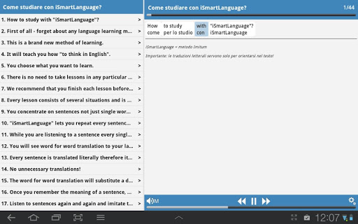 L'insegnamento dell'inglese con il metodo totalmente unico, comprovato scientificamente e verificato già per molti clienti nostri nel tutto il mondo. E il metodo più effettivo per apprendere le lingue straniere per gli autodidatti! Lei approfitterà fino a 97 % dei suoi sensi e della memoria logica – che è il tipo più effettivo di memoria, quando le informazioni si conservano nella memoria nelle unità logiche (la frase intera, storia). I bambini piccoli apprendono la madrelingua nel modo simile, quindi lo può conseguire anche Lei. I bambini prima ascoltano, dopo imitano gli adulti e finalmente provano creare i collegamenti verbali e le frasi da soli. Apprenderà SOLO la pronuncia corretta – perché ascolta solo veri madrelingua.