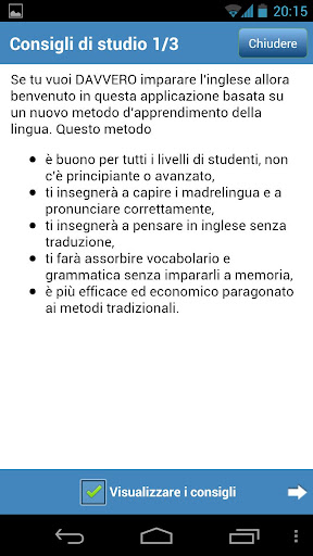Vorresti veramente PARLARE INGLESE e direttamente PENSARE in INGLESE? Se sei interessato a capire i madrelingua, parlare con un'autentica e corretta pronuncia, senza alcun bisogno di traduzione o di imparare a memoria, allora questa applicazione è per te!