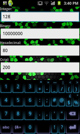 Int2Bin offers a simple yet powerful method of converting integer values to their corresponding decimal, hexadecimal, and octal values. There is no button to press, the calculations are performed as you type!