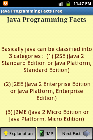 • This app helps you in exploring basic as well as advance concepts of the Java language that you should know to become a proficient programmer.