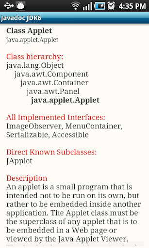 Powerful search utility for JDK6 documentation. Search documentation for Classes, Interfaces, Enum, Packages. This application works offline and don't need data connectivity.
