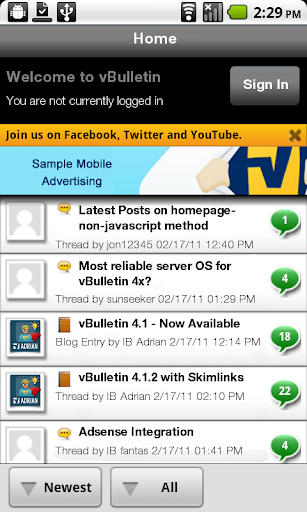 - Read and post to vBulletin blogs and articles