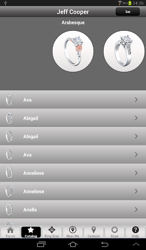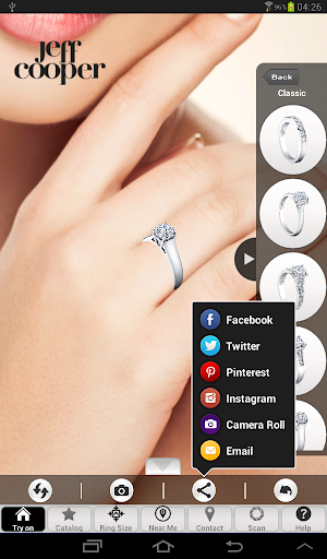 The Jeff Cooper Virtual Try-On Application by Augmente Tech Studio is a fun and easy tool that allows the use to "Try-On" every ring in the Jeff Cooper catalog, find certified Jeff Cooper retailers nearest them, and share images of their favorite styles via email and social networking sites. With the Jeff Cooper Virtual Try-On App you can now see yourself in the ring of your dreams... literally.