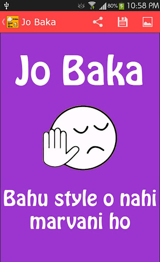 This is app have good collection of Jo Baka sentences in image format for sharing and make funny moment for your friends & family members.