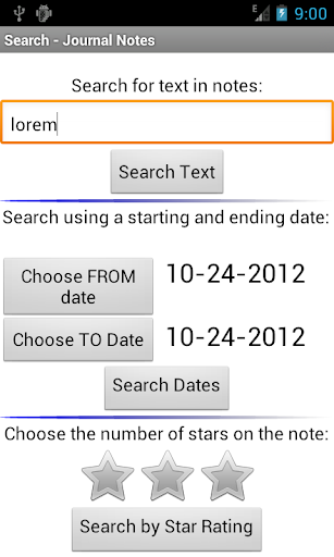 - search by text in the notes, date range and star rating