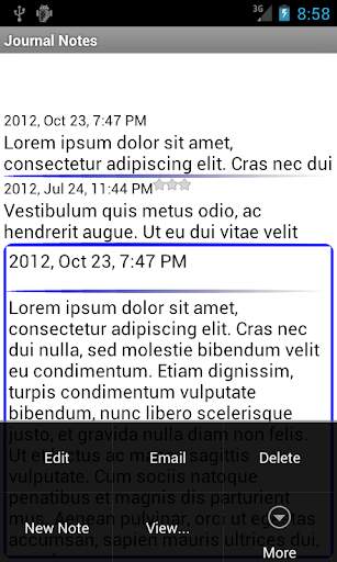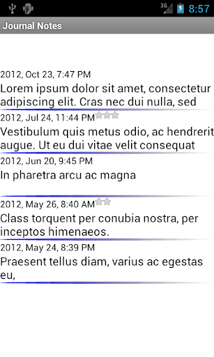 Diary of Notes saved in chronological order, quick entry and swipe through the listing. Private journal entries ensured by password.