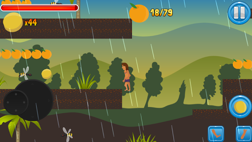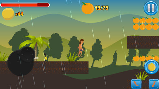 In the Jungle Man you unbelievable adventures in the JUNGLE! This game is full of interesting events and fascinating stories straight from the RAINFOREST! Hurry to collect as many ORANGES to make up your energy! You must overcome all obstacles of mysterious RAINFOREST! Fight with bees which standing in your way to victory! Show your agility!