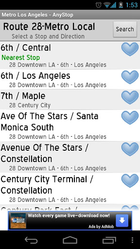AnyStop shows all routes and all stops for each route. Find the routes and stops you use the most and favorite them for quick access.