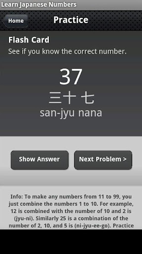• Learn Japanese Numbers: Is a great tool, on the go reference and study guide for learning Japanese numbers. Japanese Numbers Guide provides full Japanese audio pronunciation and a mini game to help you improve your Japanese number skills quickly. Go out shopping and buy things with ease on your next visit to Japan!