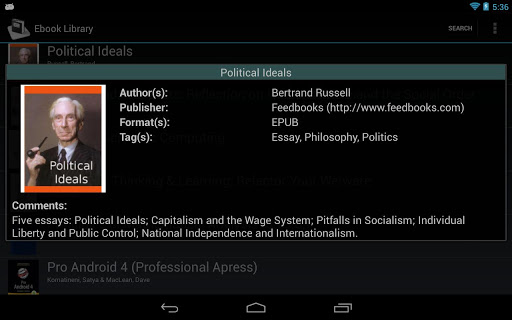 *Option to open books with your favorite viewer with the option to choose formats, e.g., pdf, djvu, cbz, cbr, epub, etc... (you must have the appropriate viewer of course)