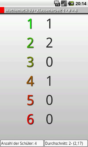 - Jede Note einer Bewertung wird farblich hervorgehoben