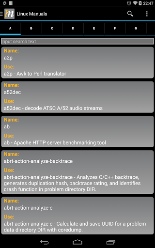 The application is dictionary that working offline and contain all Linux Manual Pages (or "man").