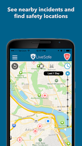 • Safety map with local incident info and key safety locations to keep you “in the know”