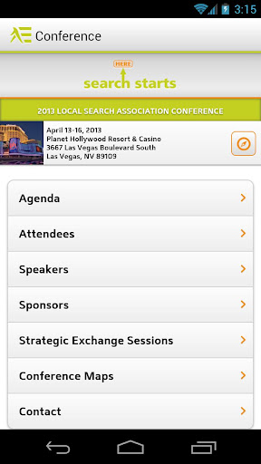 The free Local Search Association app keeps you connected to all the latest in local search. From the hottest social media trends to the future of mobile advertising, stay on top of breaking news with up-to-the-minute information. Plus, if you’re a regular attendee of the annual “Search Starts Here” conference, the app makes it easy to find out who the next speaker is or to locate a company that you want to do business with, all from your phone. Don’t miss a thing at conference and keep the local search industry just a few taps away with the Local Search Association app.