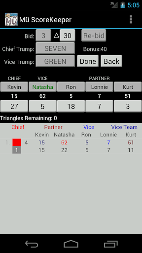 Automated score keeping program for the card game Mü by Doris & Frank. Supports 4, 5 and 6 players. Takes the drudgery out of the complicated scoring found in Mü! Tracks the dealer automatically so you don't have to, and scales the controls to fit your device perfectly. Shows you the history of all the hands so you can finally end the arguments over who's been getting the cards. Built-in help you can use anytime you need to. Message area walks you through the phases of a hand, with a hand summary after each hand so you can verify the scoring. Trial version is fully functional for 3 days.