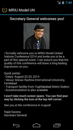 Welcome to the official Android app for Manav Rachna International University Model United Nations Conference 2014.