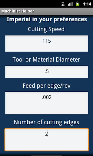 Speeds and feeds calculator to ensure you are running your tools at their optimum speeds.