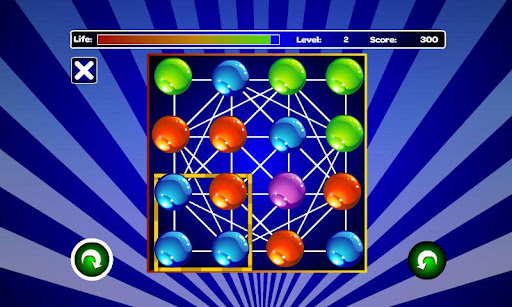 The object of this game is to rotate the Marbles until four Marbles of the same color form the four corners of a square. The square can be of any size and orientation.