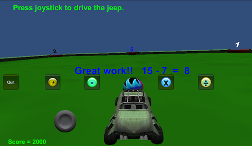 Mentally count or take away objects on the screen, then use an on screen joystick to drive a jeep on a giant pool table to learn basic math skills.