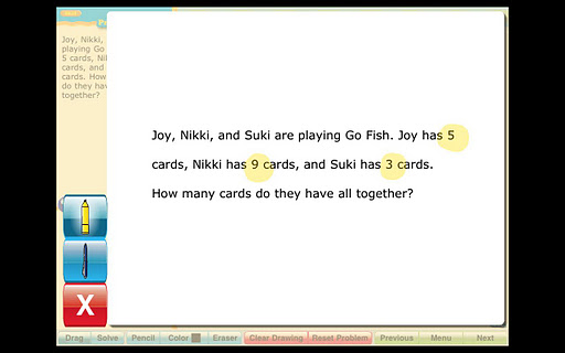 Includes pencil tool for grouping and showing work. Highlighter tool can be used to emphasize the key terms in each problem. Problems are grade level appropriate and based on Mid-Continent Research for Education and Learning Standards (McREL).