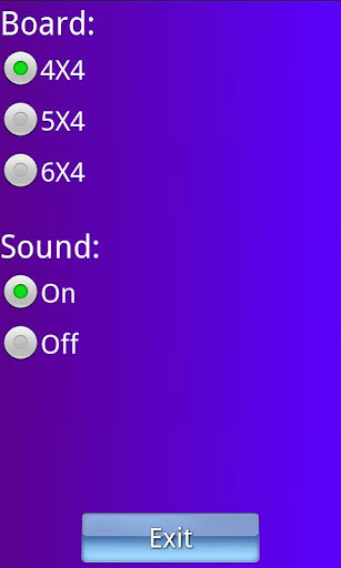3 Different board sizes for each theme:4X4,5X4,6X4.