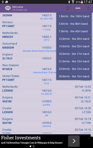 Mircules DX Cluster is an Android app that shows the info found on the international DX Cluster.