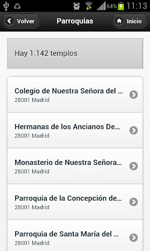 Buscador de horarios de misa. Con la opción de elegir la provincia y ciudad deseada, así como el código postal y la hora. También se puede elegir si la búsqueda es para invierno o verano y si es laborable, víspera o festivo.