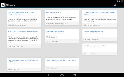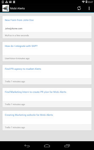 Mobi Alerts is your two-way Enterprise Mobile Notification service for Apps. It provides an integration platform for two-way notifications for cloud apps and your on-site enterprise apps.