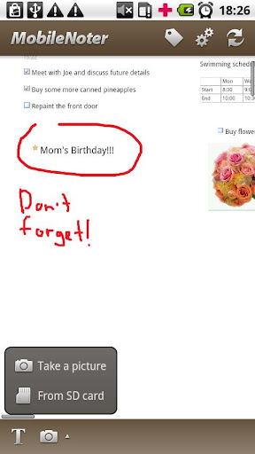 • Edit text and add images to your notes