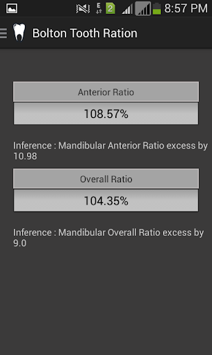 The application is one of its kind and provides dentists to calculate one of the most important bolton ratio.So our dentist friends don't have to do a much for calculating different model analysis ratios, they just have enter tooth measurement values and the application gets the ratios calculated for them!