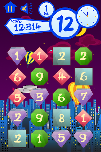 The goal of the game is simple: In 15 seconds, combine number gems to equal the number in the target number displayed at the top of the screen.