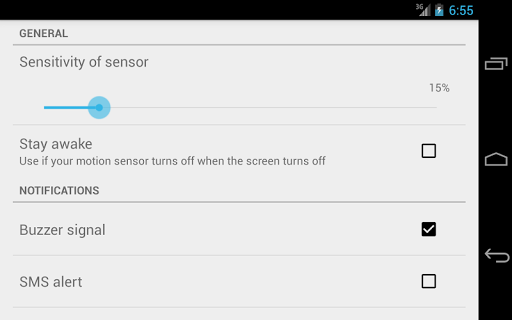 WARNING: Some version of Android will turn of the motion sensor when the screen turns off. In this case you can use option "Stay awake". This will prevent the screen from timing out.