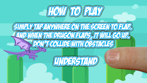 You have three dragon to choose from. The first dragon is unlocked. You have to unlock other dragons if you want to play with them. Simply tap anywhere on the screen to flap the dragon. Avoid obstacles. Thats it, as simple as that.