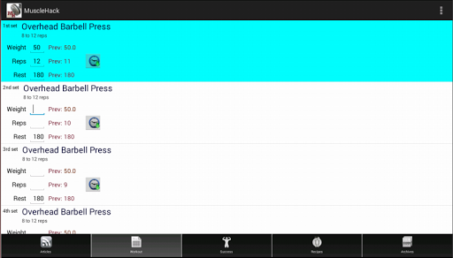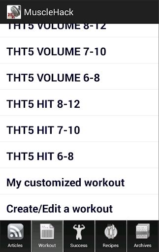 Record your weights and reps for every exercise. This app contains all the THT workouts designed by Mark McManus i.e. both the Volume (5-day) and HIT (3-day) workout routines are here in all the anabolic rep ranges (8-12, 7-10, 6-8).