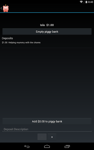 Create allowance descriptions for each deposit to your piggy bank or allowance, for example "£2.50 for cleaning your bedroom.
